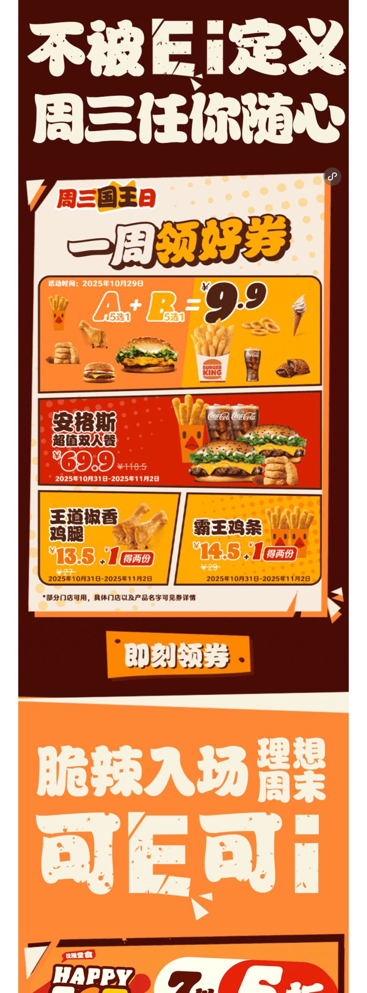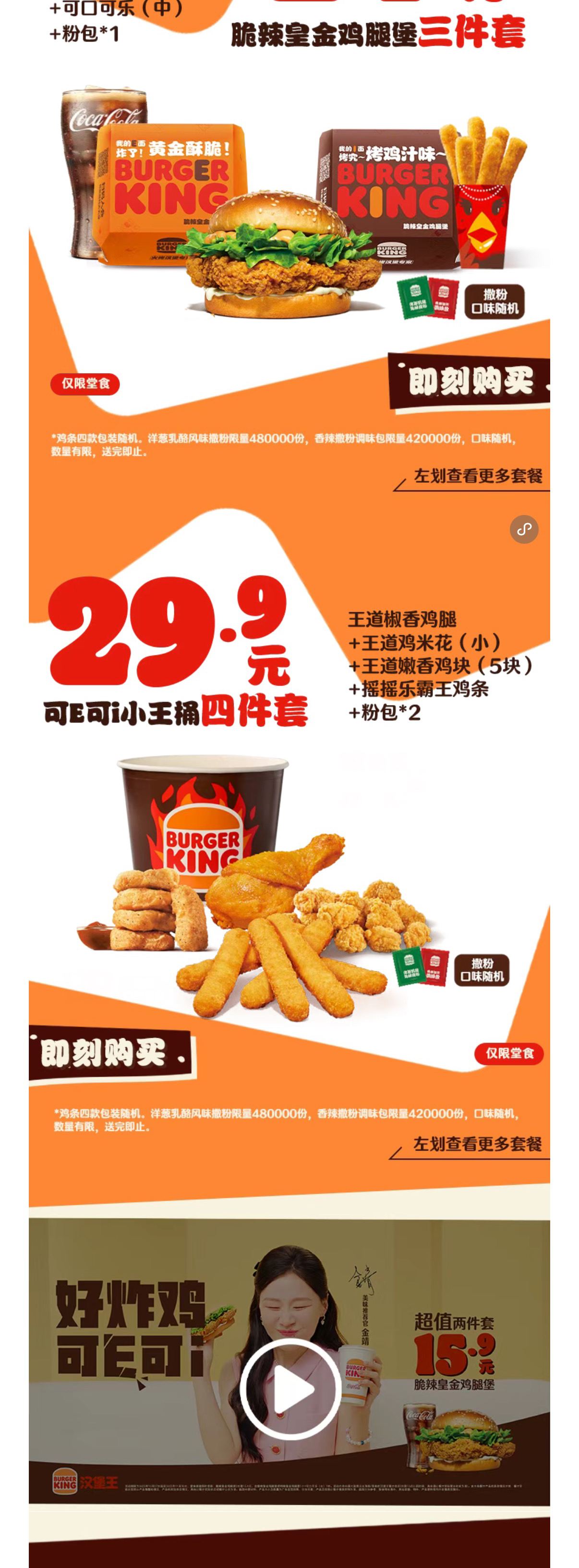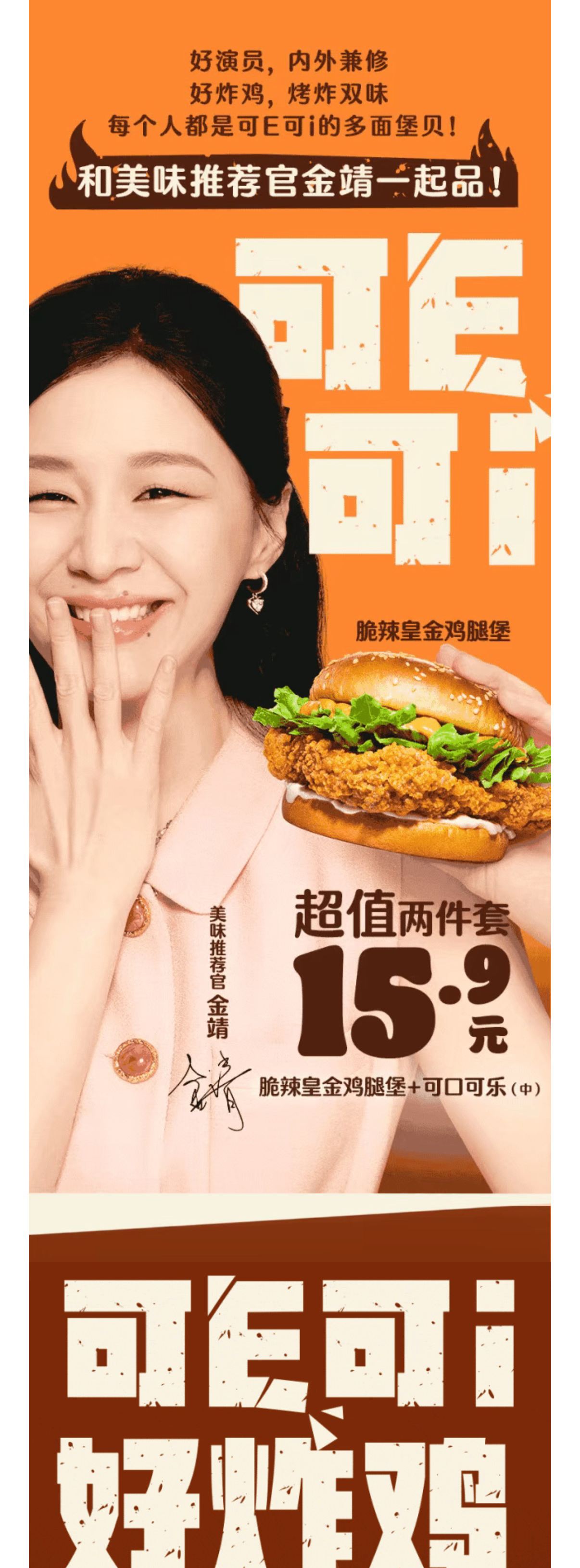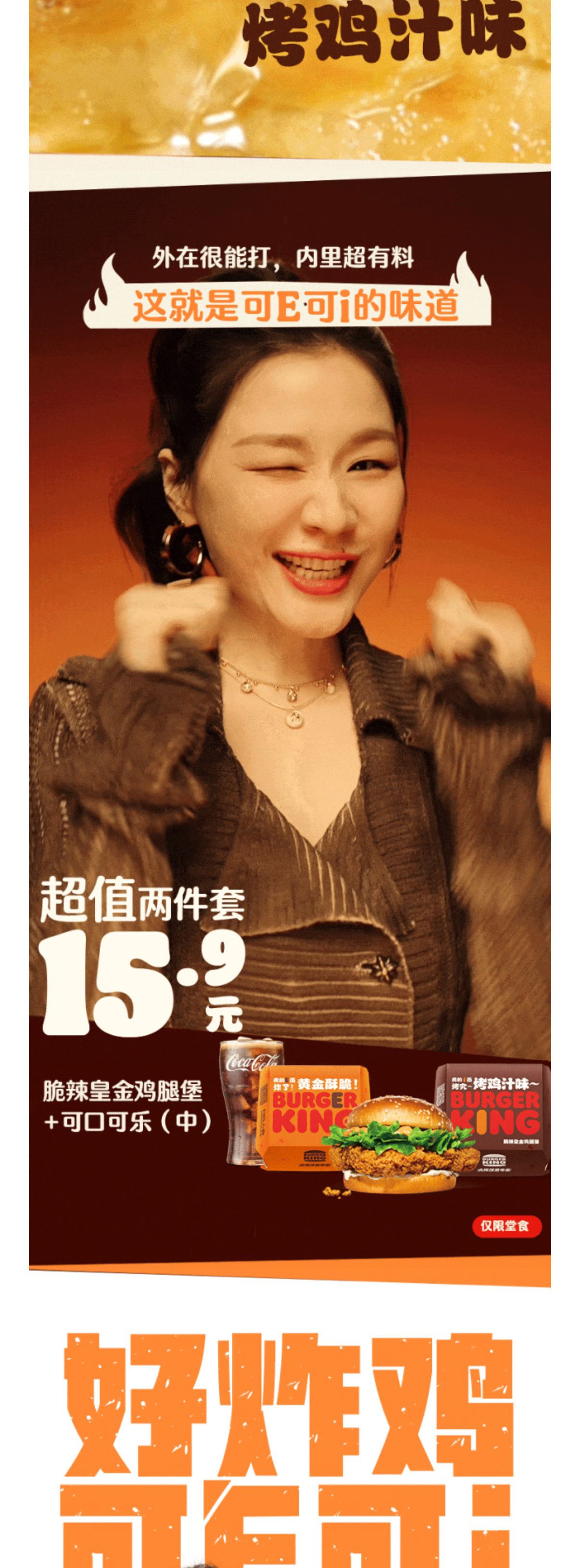 汉堡王|金靖喊你吃脆辣鸡腿堡,15.9两件套!