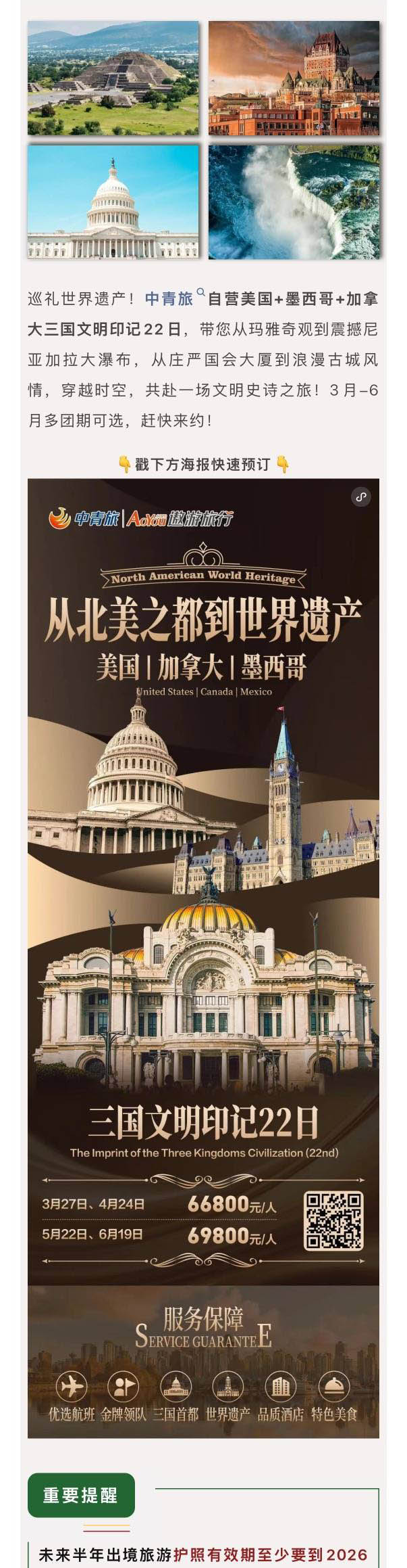 中青旅遨游旅行|巡礼世界遗产!22天深度探索北美三国文明印记!穿越时空,共赴一场文明史诗之旅!